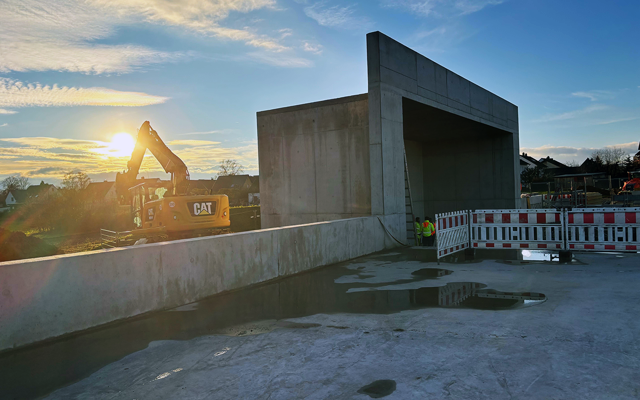 Der Rohbau des neuen Hochbehälters wurde bereits Ende November erfolgreich abgeschlossen. Damit schaffen wir eine wichtige Grundlage für die zukünftige Wasserversorgung der Region. Unser Team übernimmt Erd- und Entwässerungsarbeiten, den Stahlbetonbau sowie später Teile des Innenausbaus und die Außenanlagen. Gemeinsam mit allen Projektbeteiligten und der Stadtwerke Haßfurt GmbH treiben wir dieses wichtige Bauvorhaben für die Region voran.
