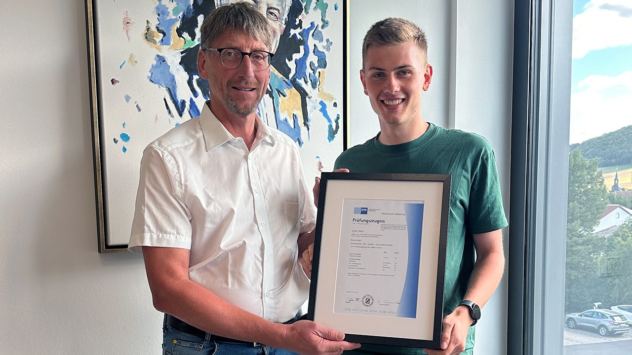 Unser Auszubildender Julian hat seine Ausbildung zum Bauzeichner erfolgreich abgeschlossen – und wurde dafür sogar von der Handwerkskammer als Kammersieger ausgezeichnet. Ein besonderer Dank geht an seinen Ausbilder Matthias, der ihn auf diesem Weg begleitet ...