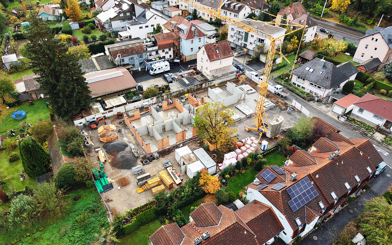 Im Mönchsgartenweg in Würzburg arbeitet unser Team gerade am Wohnprojekt „MIO – Mein neues Wohngefühl“ der Rosentritt GmbH – ein modernes KfW-Effizienzhaus 40 mit 28 Wohnungen von 23 bis 82 m² Wohnfläche, alle barrierefrei und mit Balkon oder Terrasse. Die Bodenplatte aus Recyclingbeton wurde erst im Oktober gegossen – und schon jetzt wächst das Gebäude Richtung Dachgeschoss. Unsere Bilder zeigen den Fortschritt aus der Drohnenperspektive und direkt von der Baustelle: sauber, schnell, organisiert.