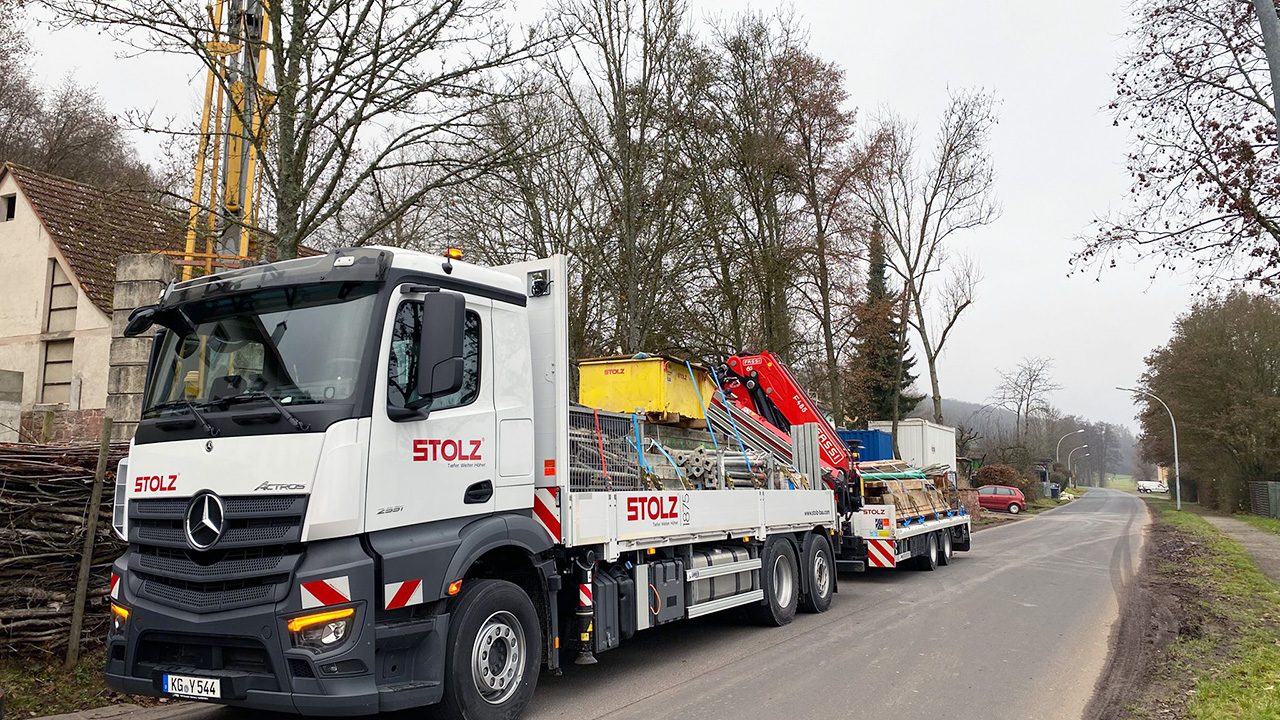 Kurz vor Weihnachten durften wir unseren neuen Kran-LKW Mercedes Actros 2551 mit Tandemanhänger der Firma Zanner in unseren Fuhrpark aufnehmen. Der Neuzugang verstärkt unsere Hochbau-Abteilung und kommt ebenso im Tiefbau zum Einsatz, zum Beispiel beim ...
